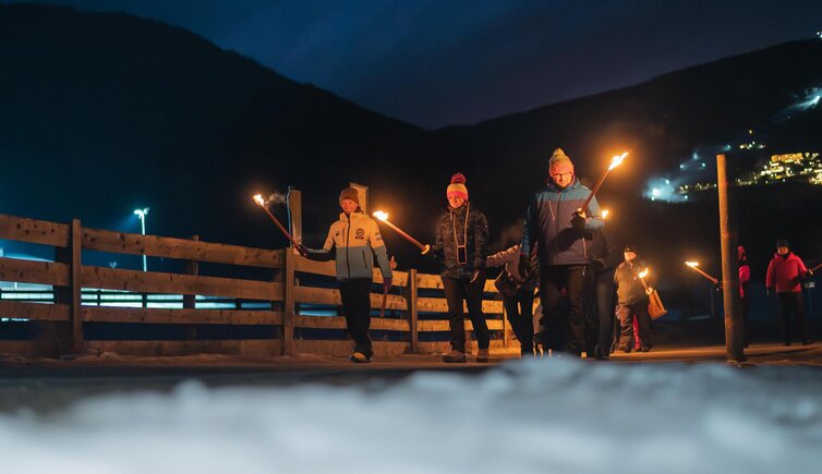 Ogni lunedì sera Valdaora si illumina di un’atmosfera tutta particolare: durante la passeggiata con le fiaccole potrai scoprire il villaggio invernale nel caldo bagliore delle luci, in modo davvero magico. La camminata dura circa 45 minuti e ti conduce attraverso un paesaggio innevato – un’esperienza speciale per grandi e piccini. Le luci tremolanti creano un’atmosfera unica e rendono la serata indimenticabile per tutta la famiglia.