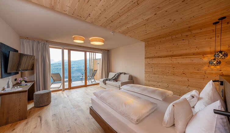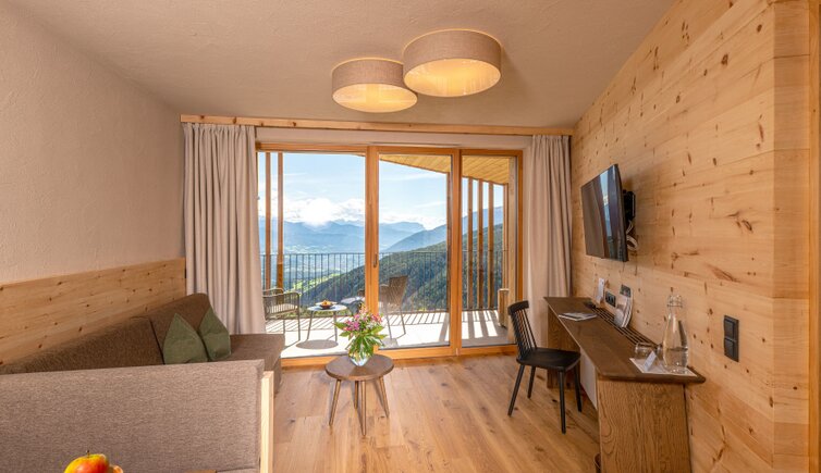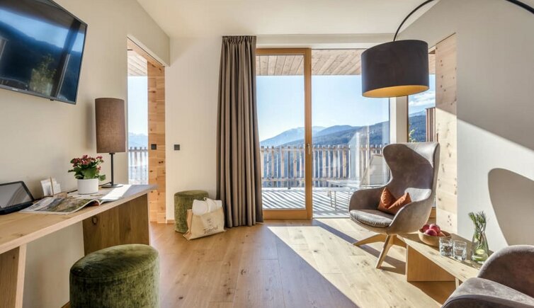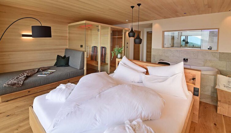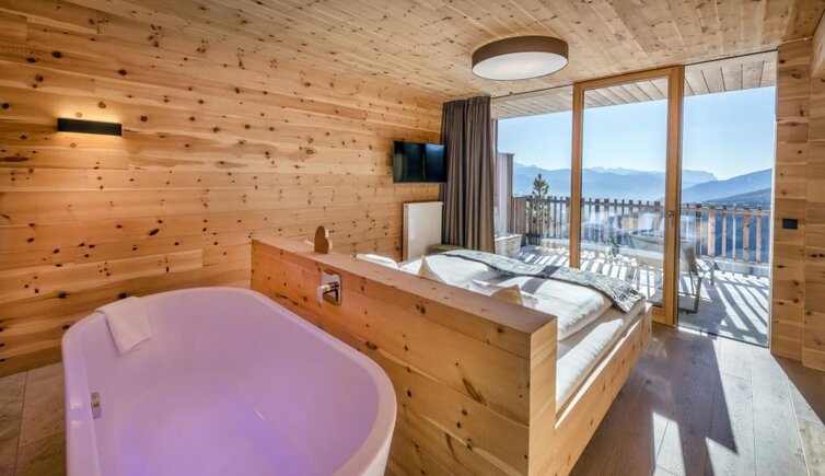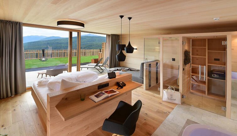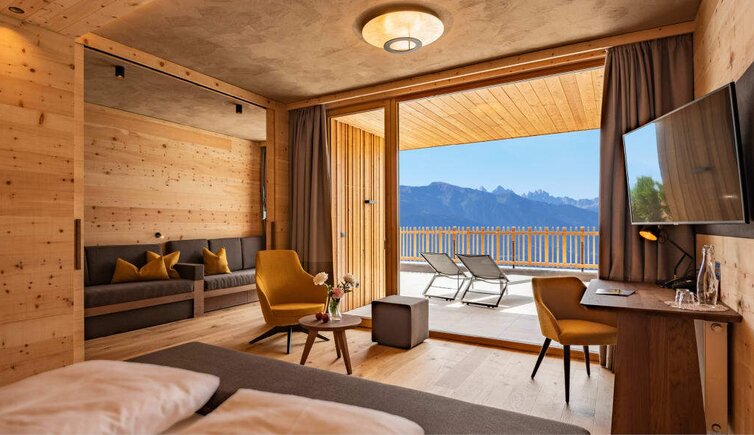 Il Tratterhof è l’hotel più alto della regione e si trova a 1.500 metri al pari con le Dolomiti. Un vero specialista del panorama.