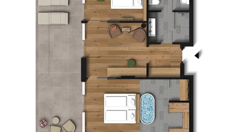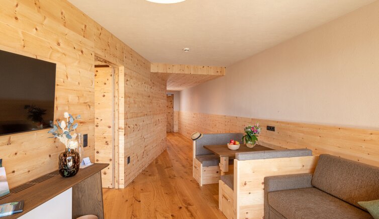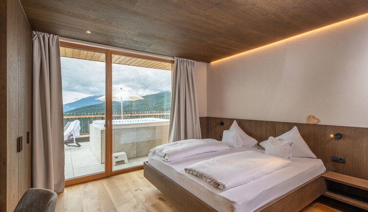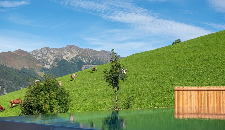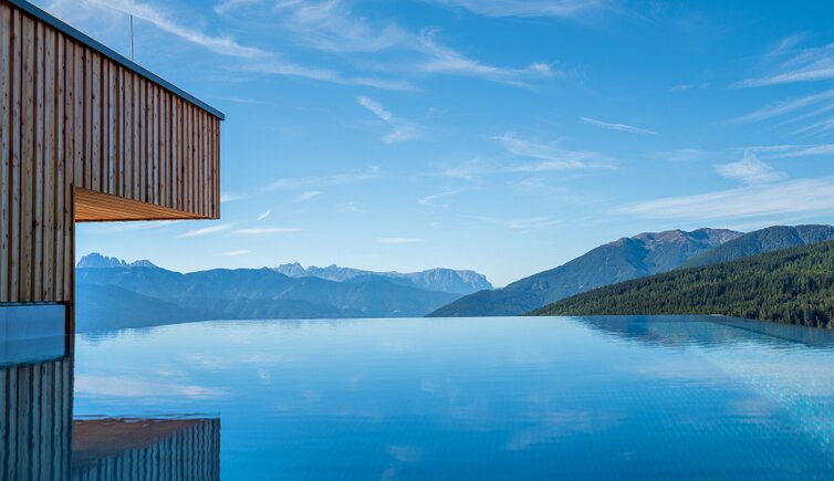 Durante le vostre vacanze al Tratterhof Mountain Sky Hotel una cosa eccezionale sarà sempre onnipresente in qualsiasi stagione dell’anno: una vista mozzafiato sulle Dolomiti con Peitlerkofel, Villnösser Geisler, Sassolungo, Plattkofel e Sciliar.