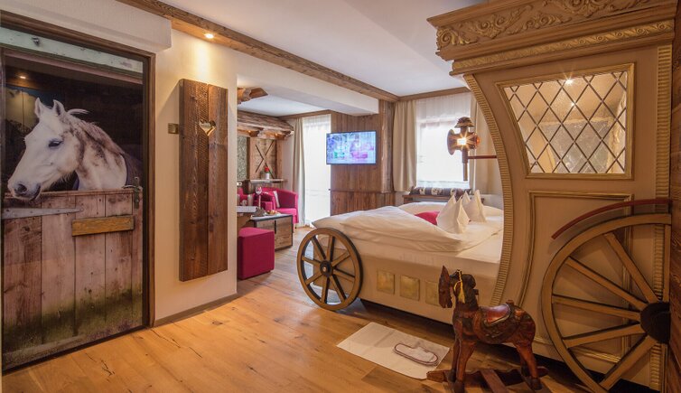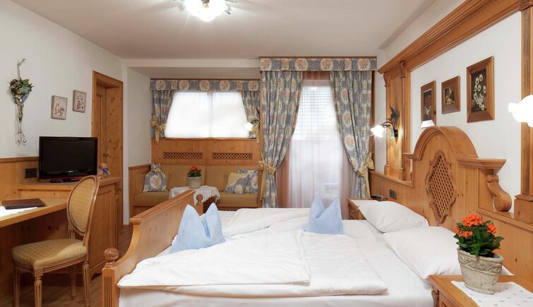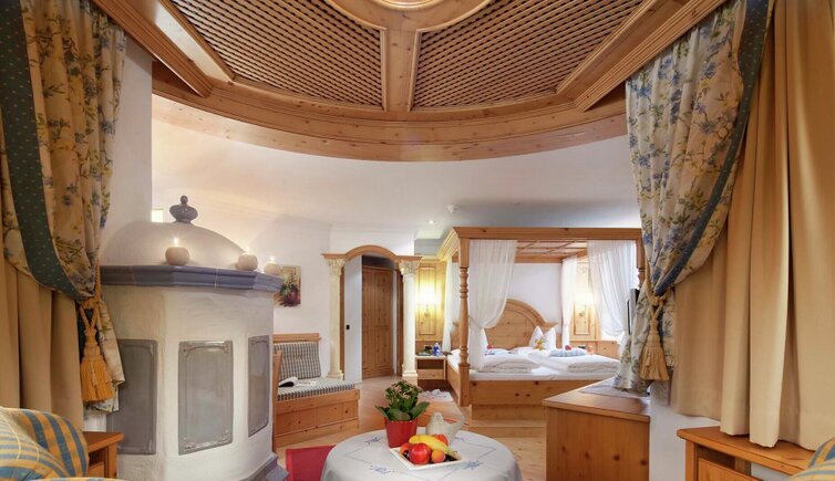 Dopo una giornata attiva in montagna, potrete rilassarvi nella area benessere e nelle romantiche camere arredate in stile tirolese.