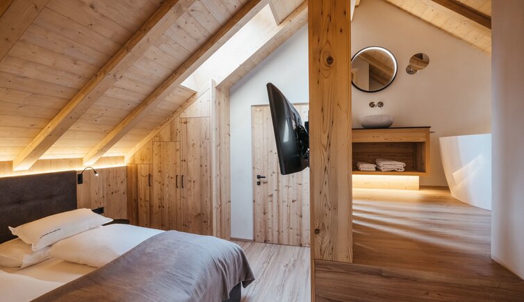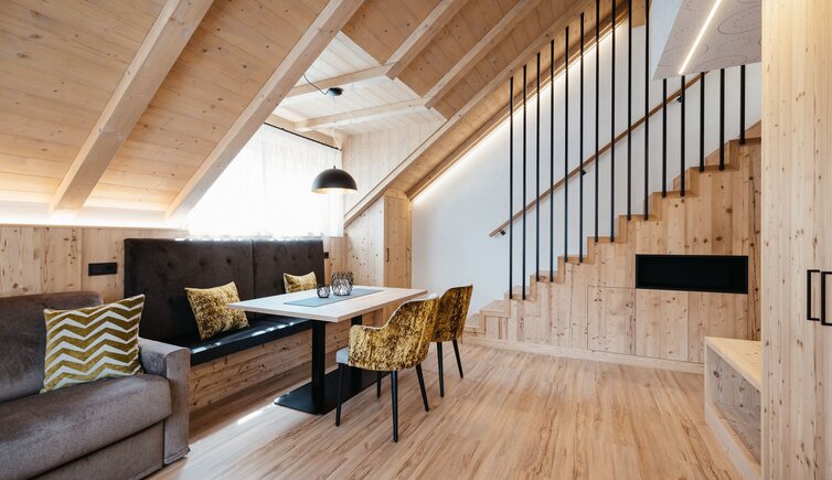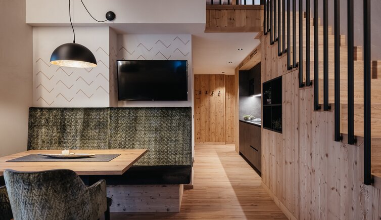 Lo Chalet Alpino Sauter, situato in posizione centrale nella tranquilla San Vigilio di Marebbe, nel cuore delle Dolomiti, colpisce soprattutto per il suo equilibrio tra innovazione tecnologica, tradizione e sostenibilità ecologica.
