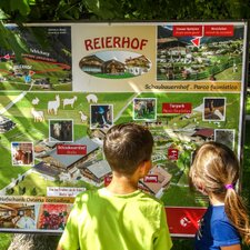 Per la felicità dei bambini sono presenti numerosi parchi giochi con moltissime attrazioni per tutte le età, più un’area giochi coperta. Gli adulti possono rilassarsi sulle sdraie vicino allo stagno, dove una zattera attende gli esploratori. Inoltre, l’offerta di questo luogo è completata dall’adiacente osteria. La visita al Reierhof può essere combinata con un’escursione attraverso il sentiero Talblickweg.